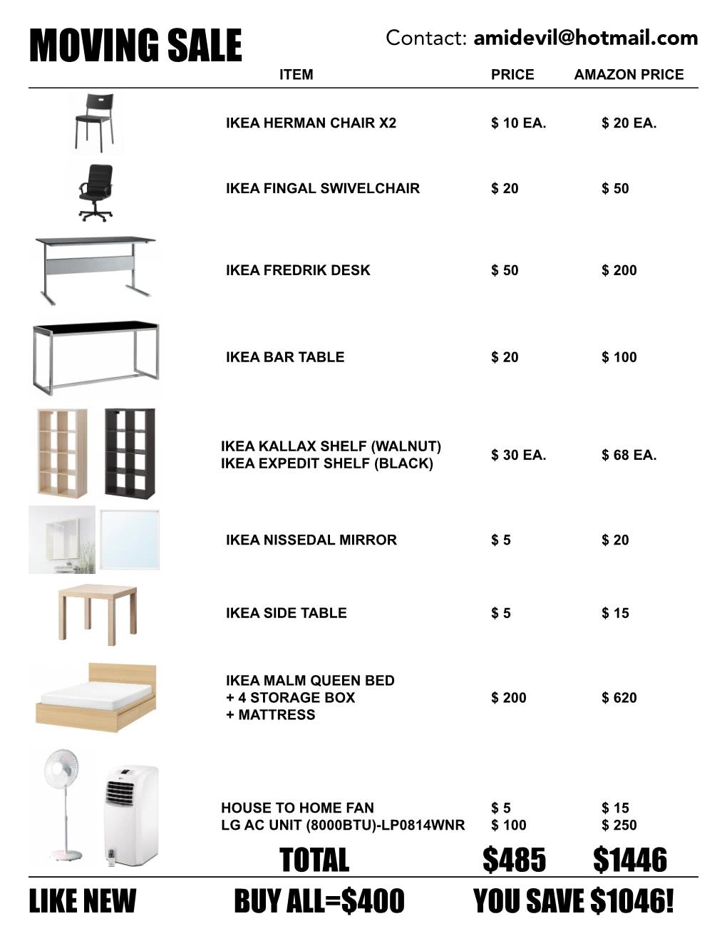 2579 가구 가구,가전 무빙세일!! 사진 IKEA가구들과 몇몇 가전 판매합니다. 혼자 쓰던 것들이라 완전 새것입니다. 뉴욕 ... 지스 2019.05.09 조회수 : 1189